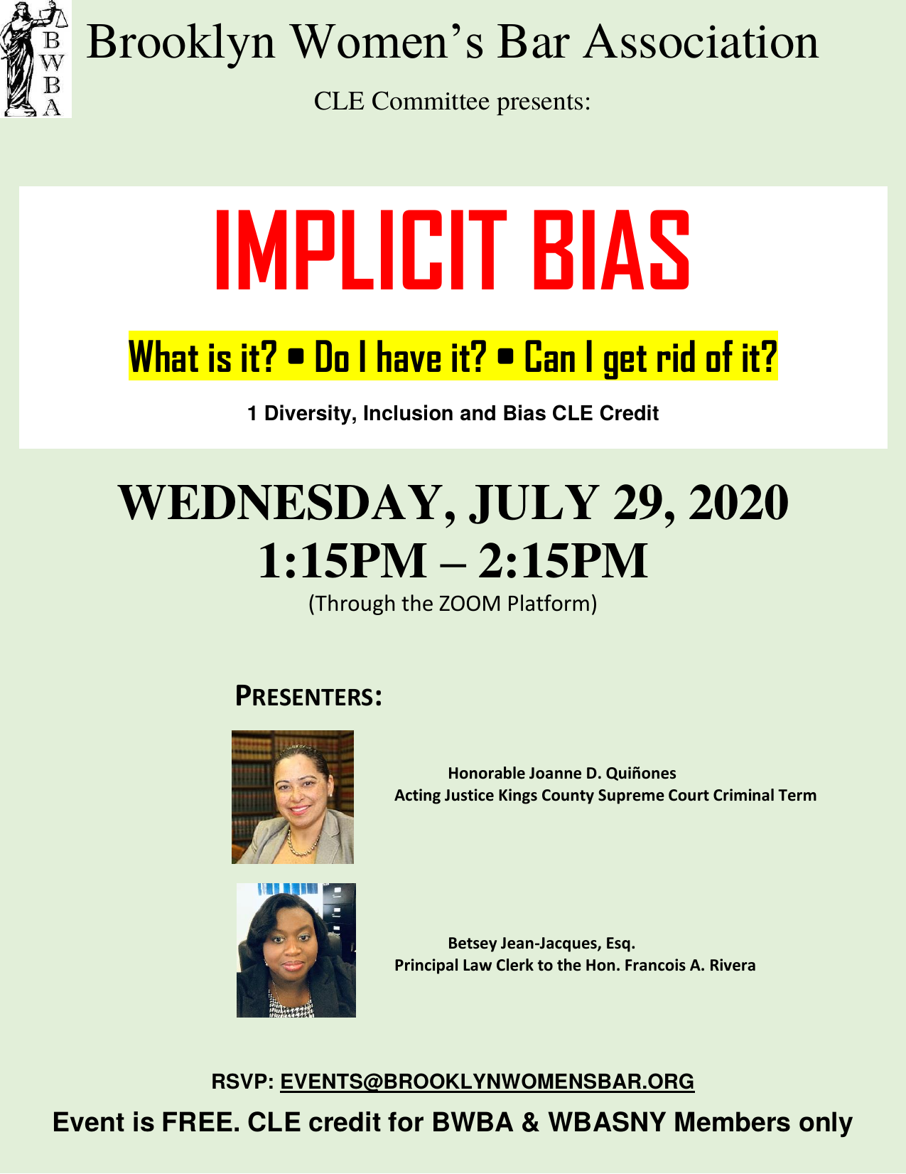 From BWBA CLE Committee: Implicit Bias. What is it? Do I have it? Can I get rid of it?