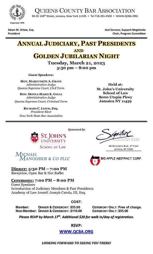 Queens County Bar Association: Judiciary, Past Presidents and Golden Jubilarian Night