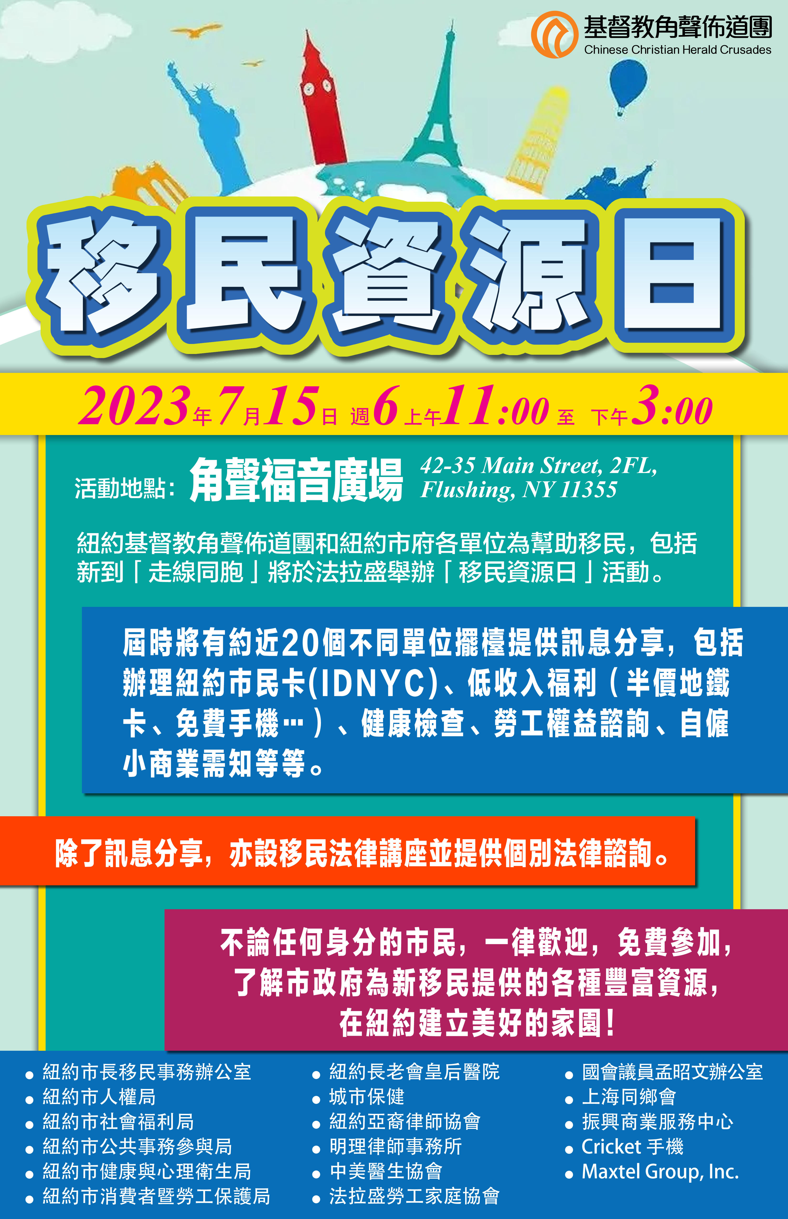 As the event will be held in Flushing, coinciding with our Queens clinic scheduled for July, we have decided to host the Queens clinic at this community fair on July 15, 2023. We are in need of volunteer attorneys and interpreters.