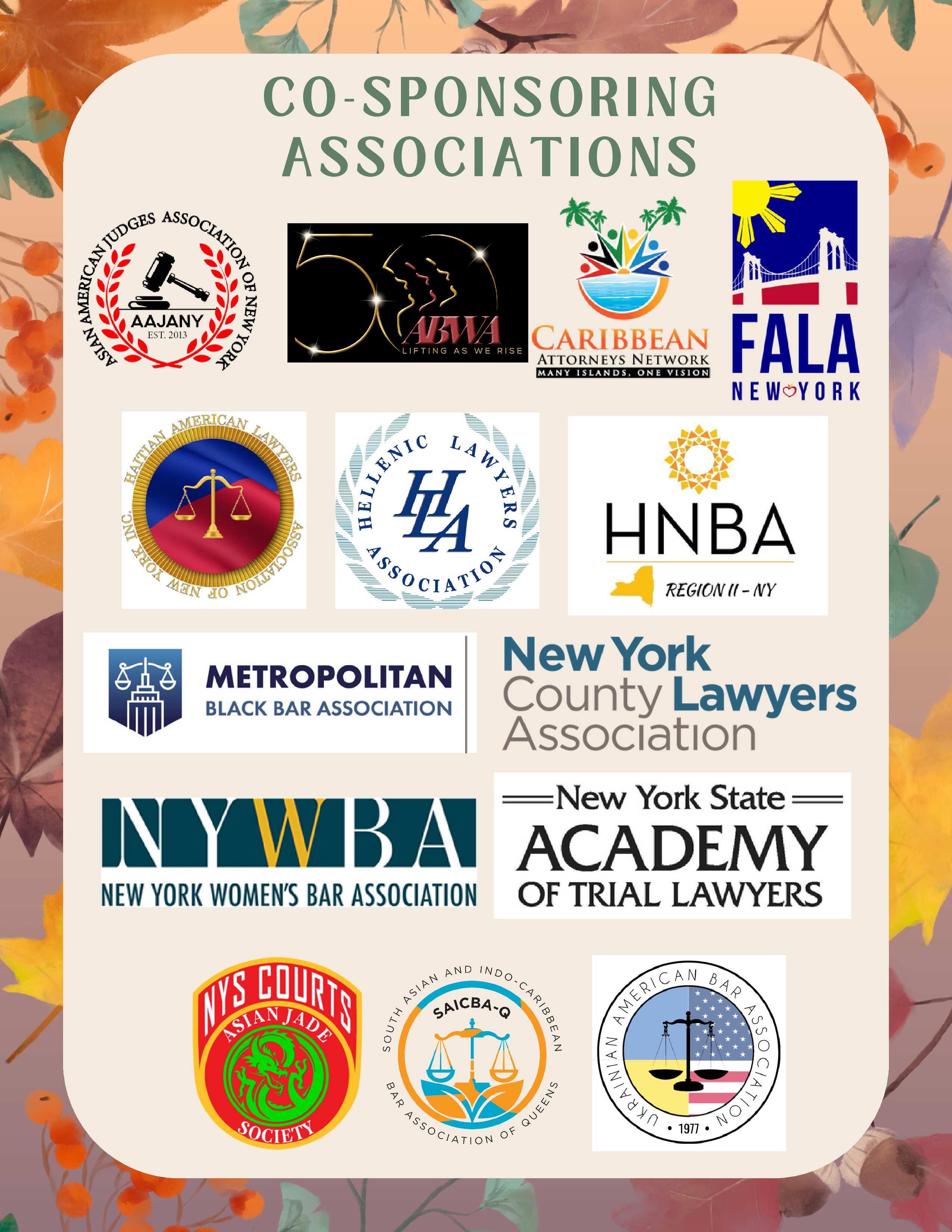 We hope you will join AABANY in building a supportive network embracing wellness and well-being in the legal community. Co-Sponsoring Organizations/Associations (list in formation): - Asian American Judges Association of New York