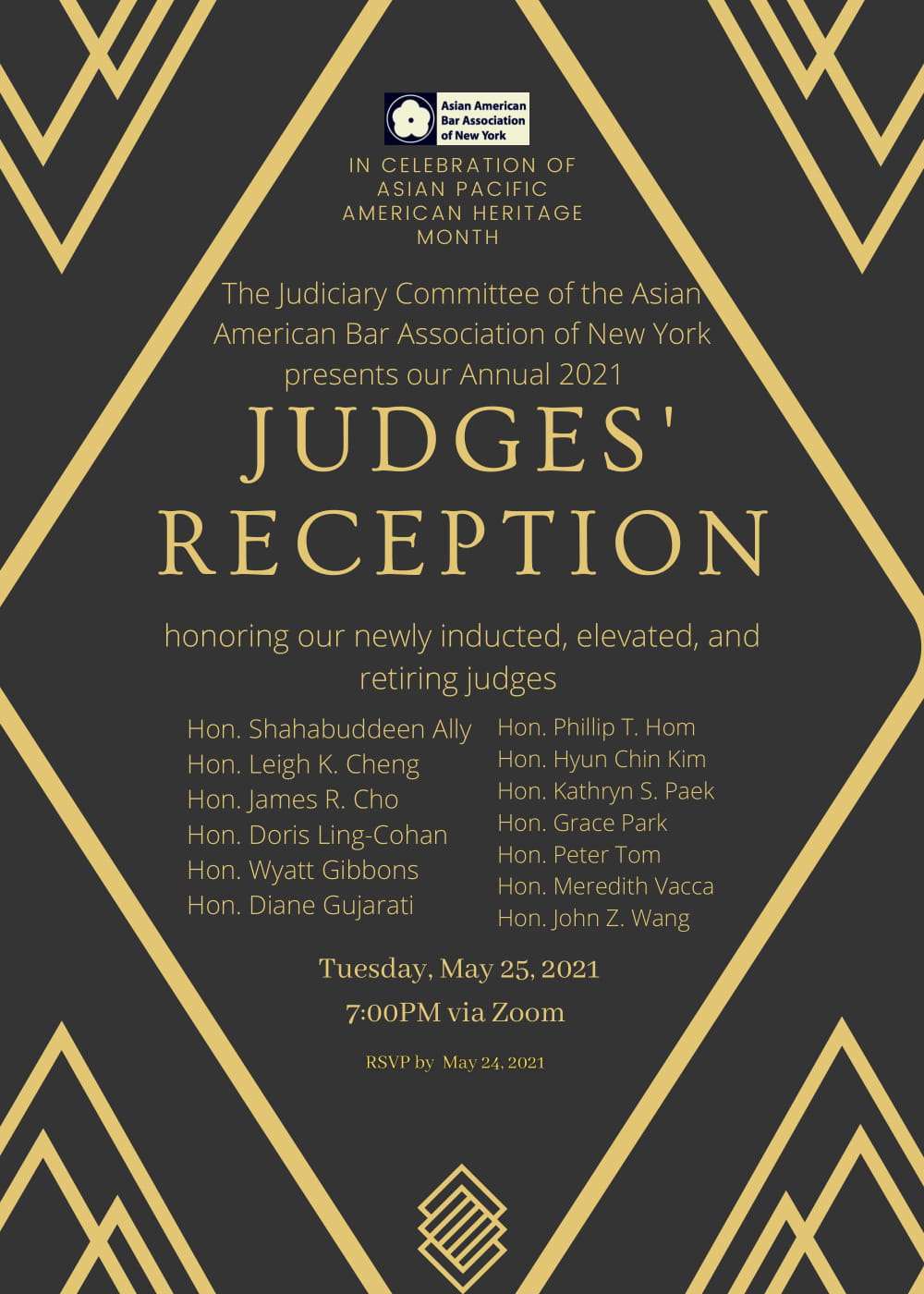 - AABANY's Judiciary Committee Presents: The Annual 2021 Judges' Reception, May 25