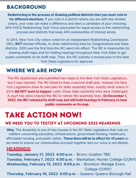 - AABANY Co-Sponsors: APA Voice Redistricting Task Force - This is Where We Draw the Line - January 26