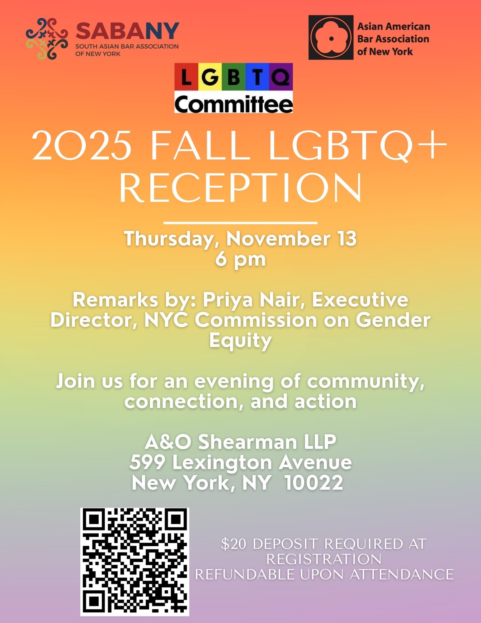 Join us to celebrate the diversity within our profession and meet other LGBTQ Asian American and South Asian attorneys for peer support, celebrating and embracing diversity, and engaging in the struggles and challenges facing our community.