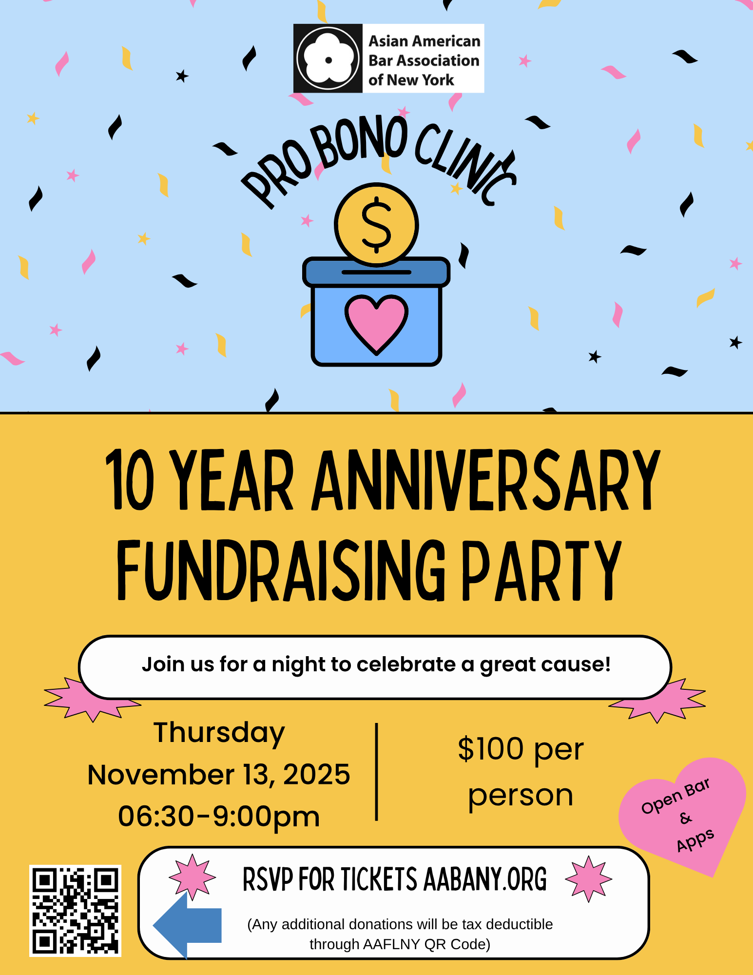 You're invited to celebrate the 10th anniversary of the Asian American Bar Association of New York (AABANY) Pro Bono Clinics!
