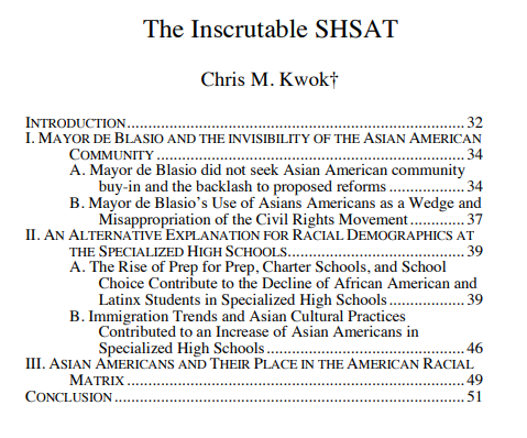 The article begins with a detailed discussion regarding Mayor Bill de Blasio’s exclusion of the Asian American community in attempting to eliminate the SHSAT and the ensuing backlash that derailed the proposed plan. The discussion then shifts toward alternative explanations for the racial composition of the specialized high schools and how the rise of Prep for Prep, Charter Schools, and School Choice have contributed to the decline of African American and Latinx students in those schools. Finally, the article concludes with an overall commentary on the current position of Asian Americans within America’s “racial matrix” and stresses the need to shift away from antiquated frameworks of social justice toward a more current and nuanced understanding of Asian Americans in politics today.