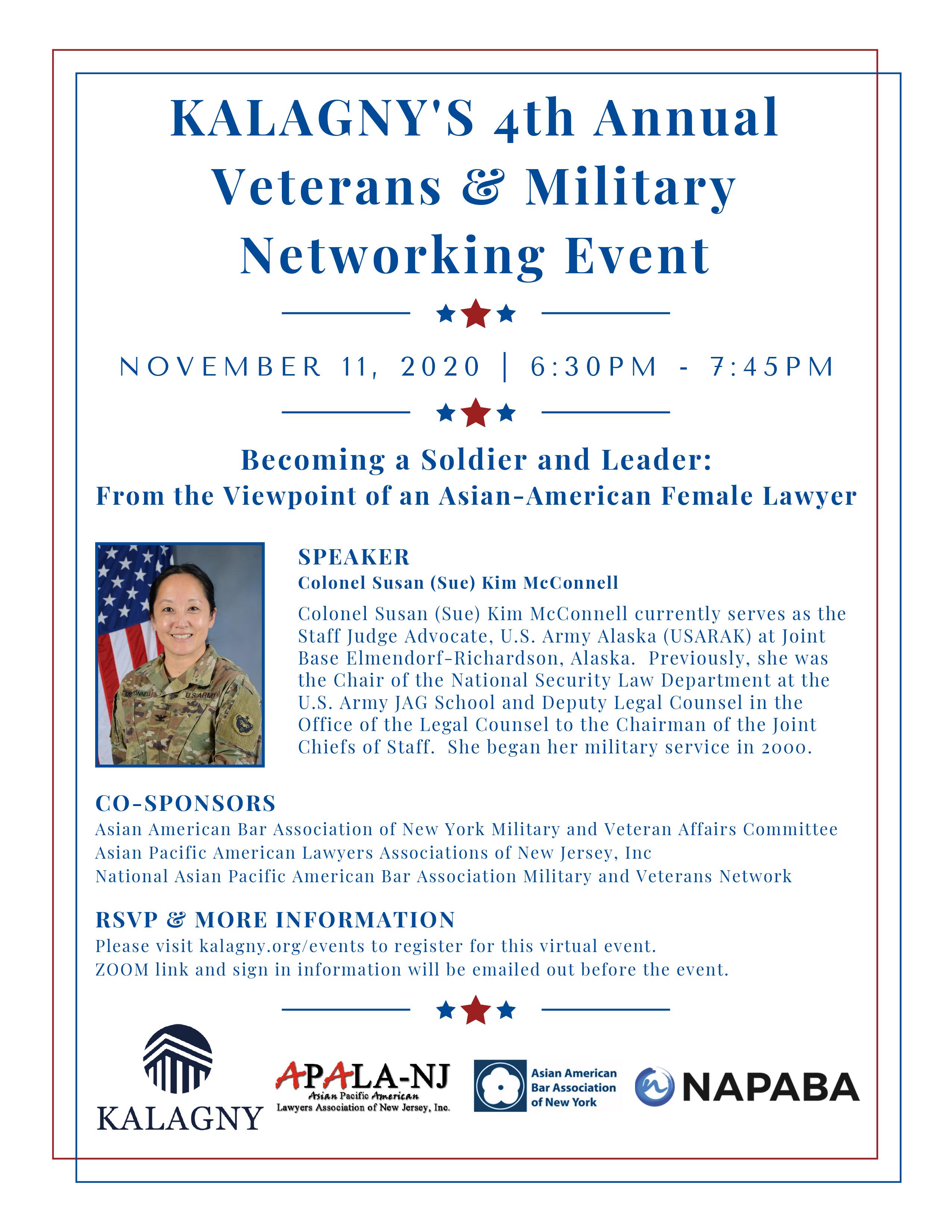 - AABANY Military and Veteran Affairs Committee Co-Sponsors: Becoming a Soldier and Leader, November 11